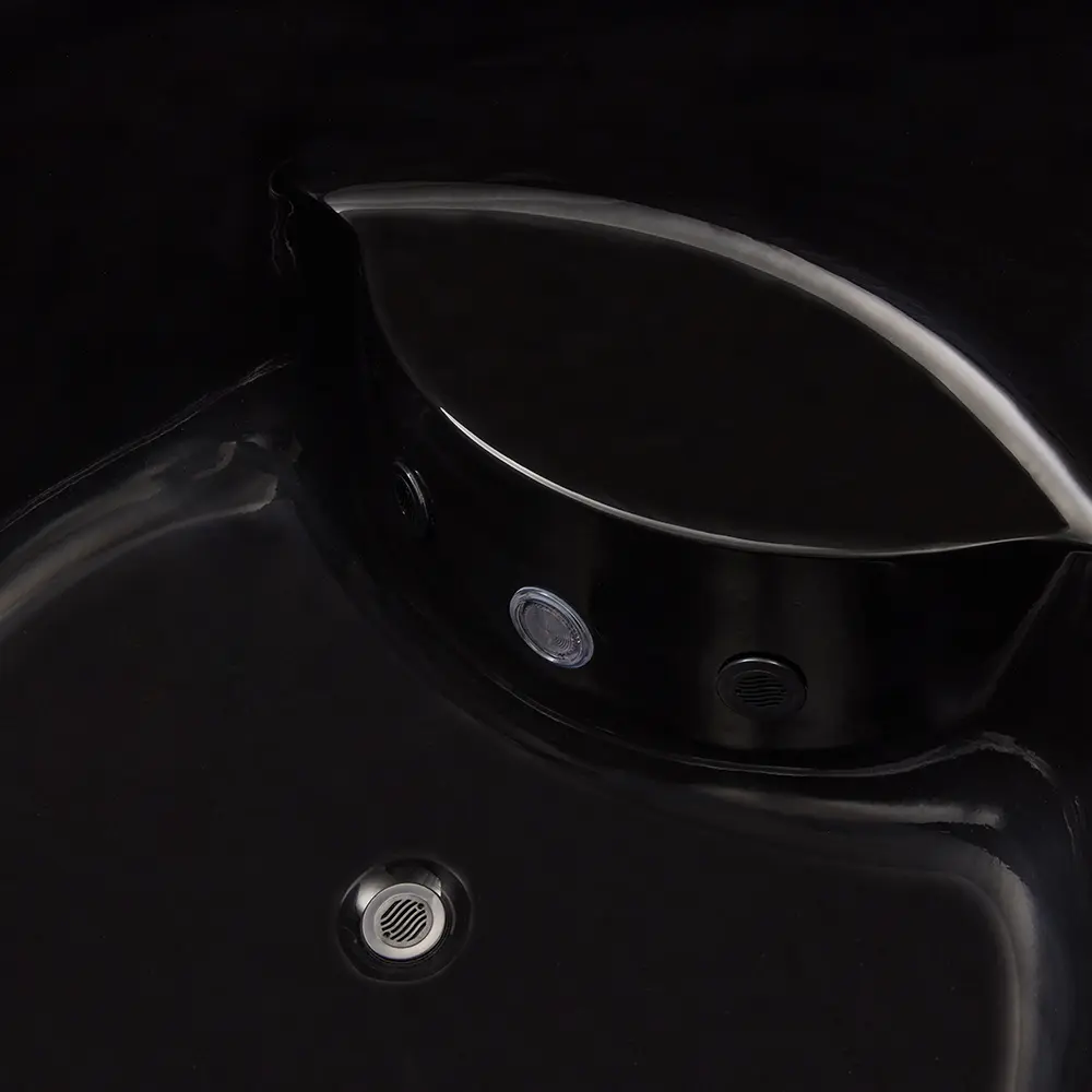 Для удобства пользователя предусмотрено внешнее отображение температуры, позволяющее контролировать параметры воды перед погружением. Три форсунки обеспечивают мягкую циркуляцию и массажный эффект, а LED‑подсветка создает расслабляющую атмосферу. Наличие перелива и продуманной дренажной системы гарантирует безопасность эксплуатации и защиту от переливания воды через борт.​