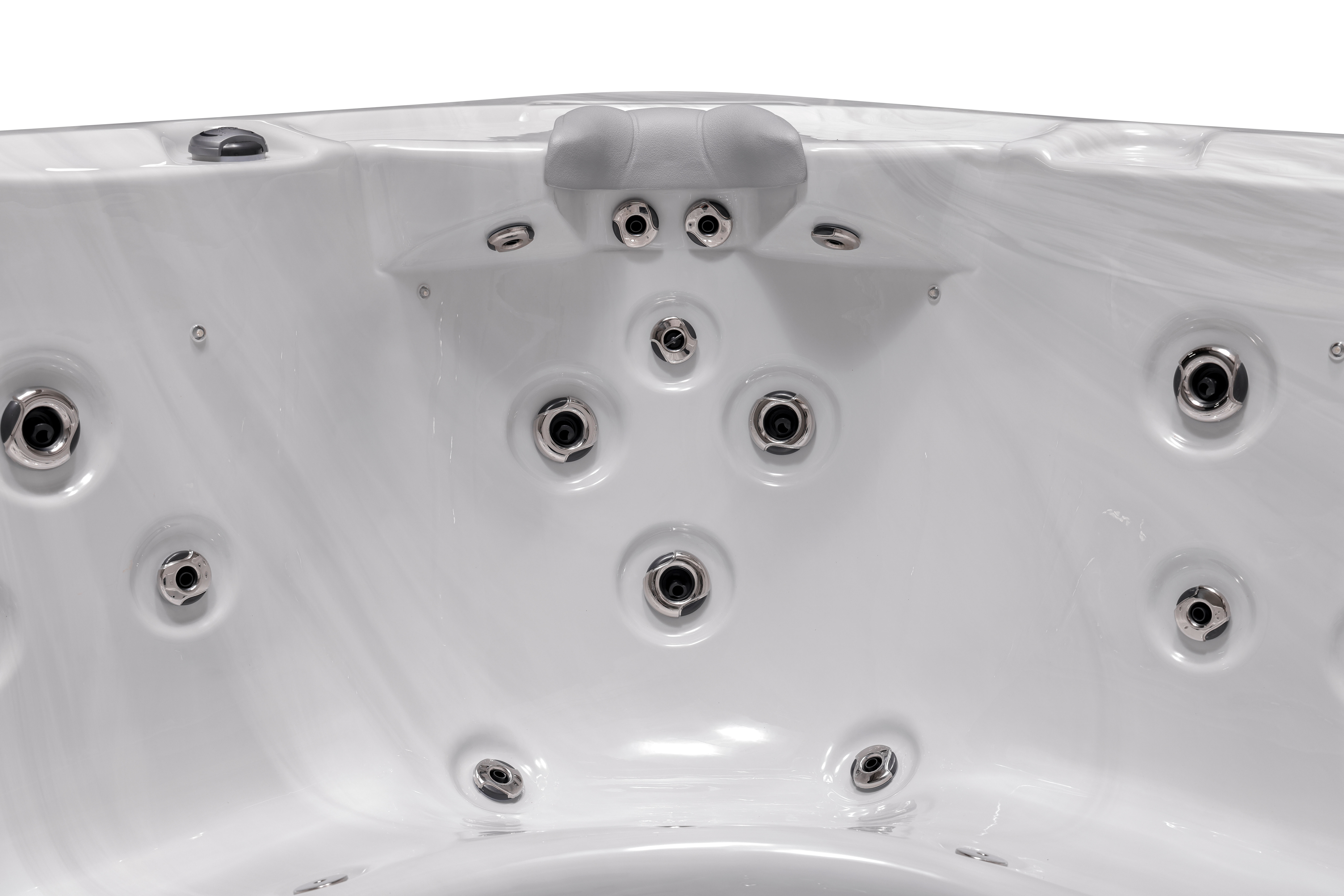 Meyli оснащен 66 воздушно-водяными форсунками и 12 дополнительными аэро-форсунками (опционально), которые создают невероятный массажный эффект для полного расслабления всех групп мышц. Просторная эргономичная конструкция с восемью посадочными местами и четырьмя подголовниками обеспечивает максимальный комфорт для большой компании.