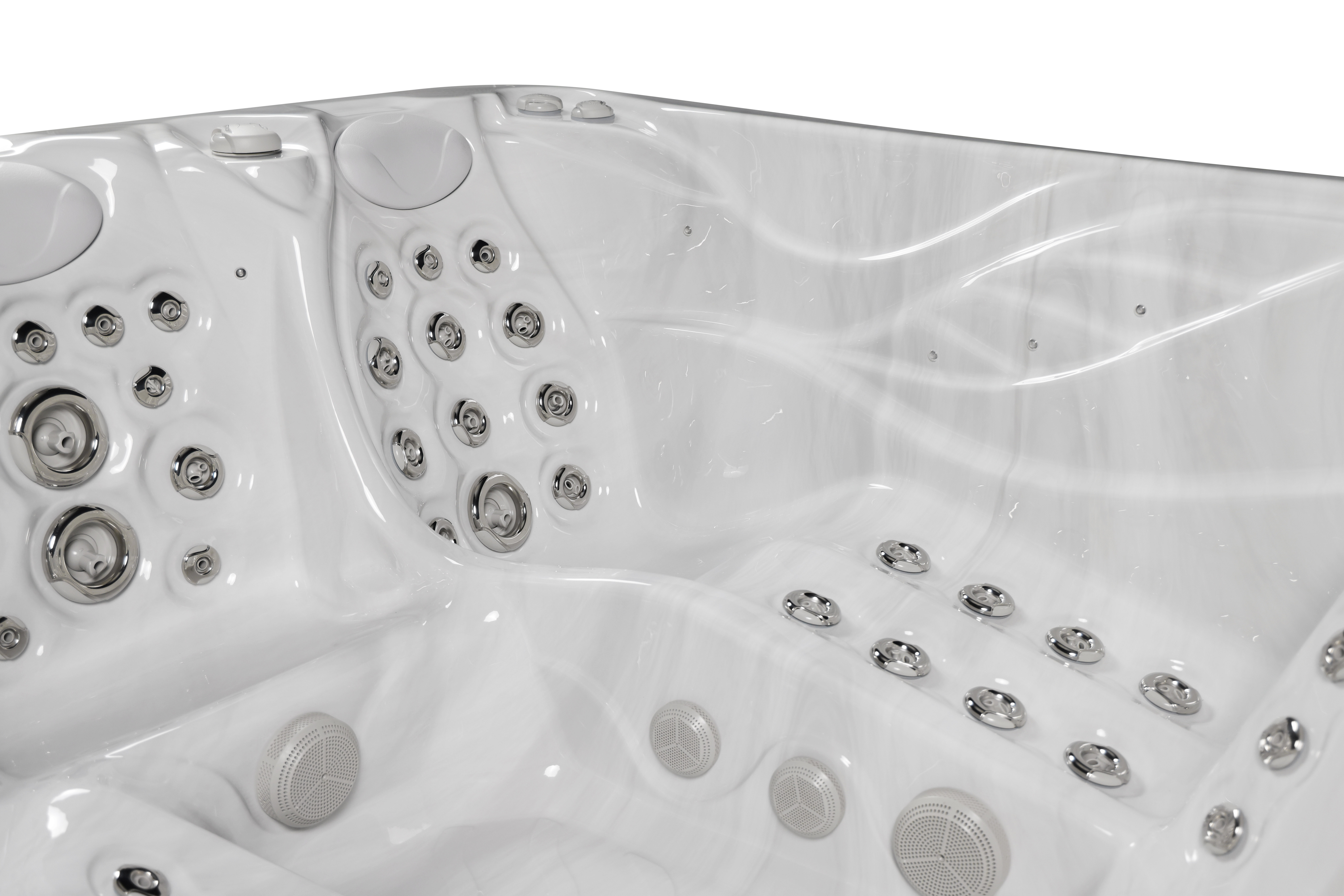 Хорошо продуманная система освещения превращает вечерний отдых в эстетическое наслаждение. Многоцветная подводная подсветка Northern Lights, дополненная изящной подсветкой ватерлинии, создает сложную игру света на воде, способствующую глубокой релаксации и визуальной гармонии.