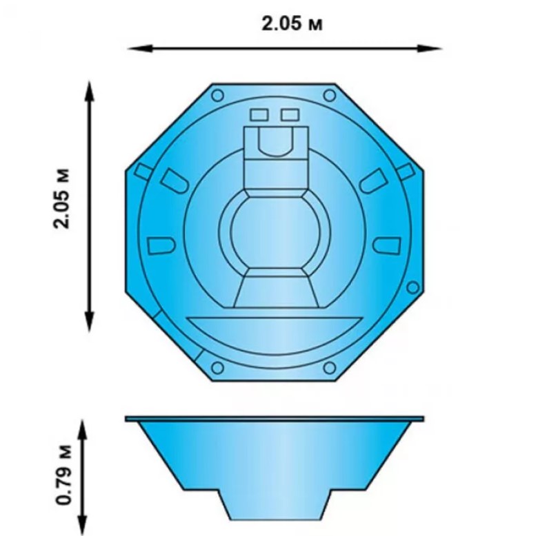Для заглубления СПА до необходим котлован (кессон) со следующими размерами: все стороны на 50-70 см больше, чем размеры СПА. -